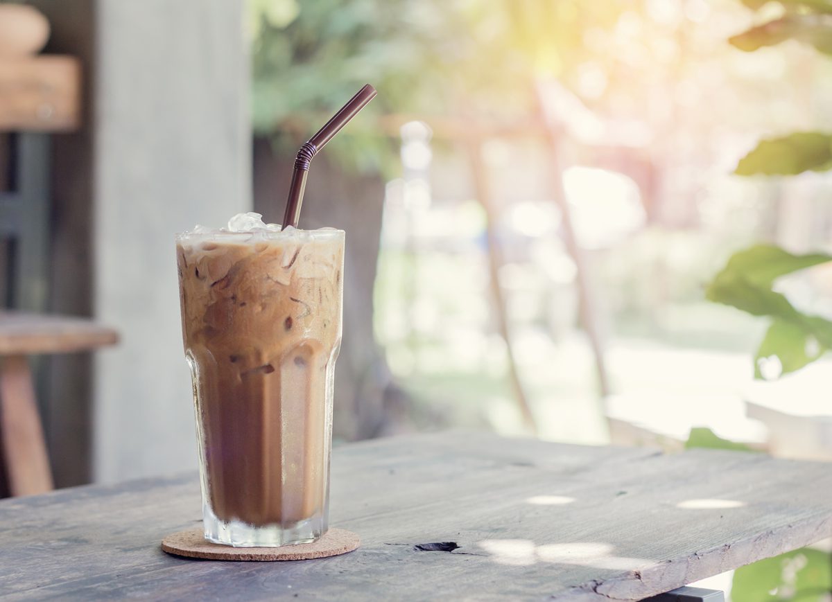 Iced coffee or latte in glass cup